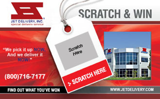 Scratch & Win big savings at Jet Delivery. These tickets will have a variety of potential prizes ranging from a $10 credit to a $50 credit towards your next invoice.